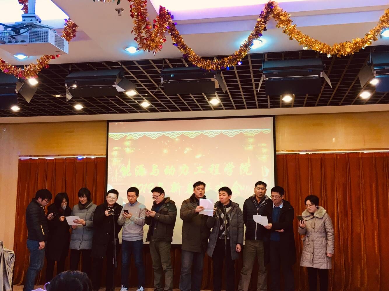 教职工于东区教职工活动中心欢聚一堂,共同演绎2019年新春联欢会。联欢会由陈明老师和宋莹老师主持。王院长代表领导班子致辞:在各位老师的共同努力下,2018年能动学院各项工作都取得了很好的成绩,希望大家再接再厉,再创辉煌,同时提前祝大家新春快乐,工作顺利,阖家欢乐!