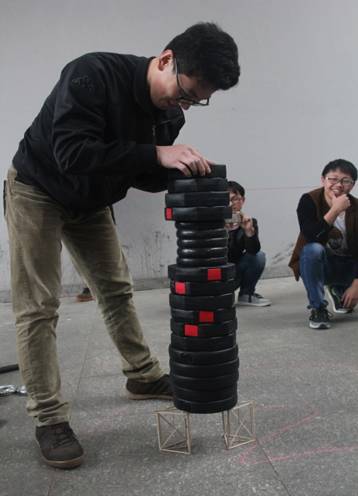 在学海苑·公共教学组团南馆大厅举办“木桥承重”结构设计大赛。88组参赛选手运用知识和创意,给重量不足100克的木桥赋予了惊人的承重力。