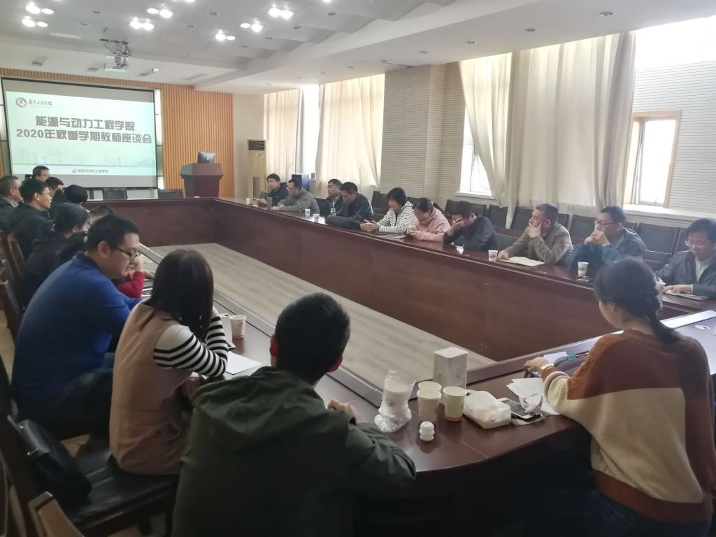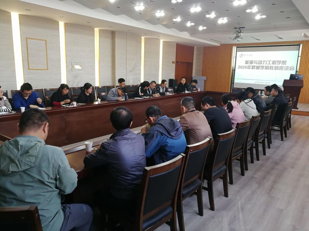 在工程中心9号楼三楼会议室举行2020年秋季学期教师教学座谈会,会议由能动学院教学副院长薛锐主持,会议围绕如何加强课程思政、推进教学创新、提升教学管理质量等开展了讨论。能动学院副院长张东亮、能动学院各系部主任、教学督导分团团长及督导分团全体成员,近三年新进青年教师代表、中老年教师代表等共计30余人参加了会议。