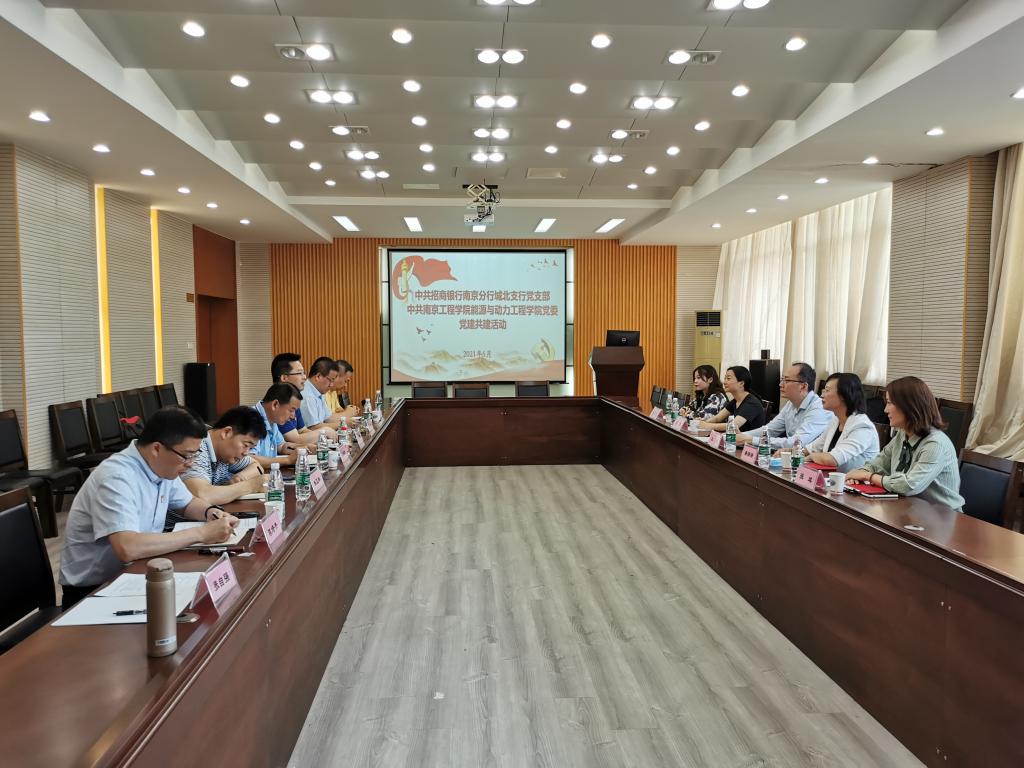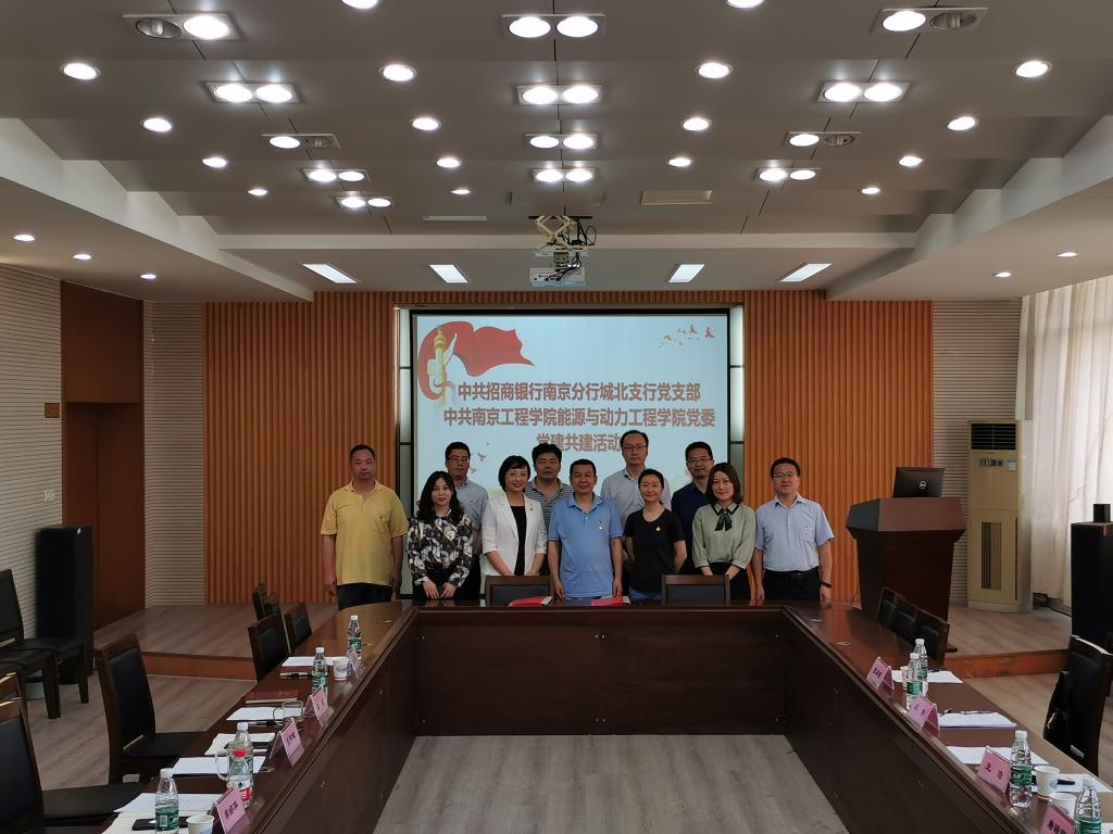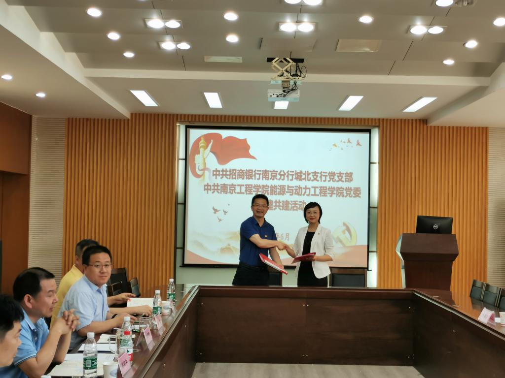 党委与招商银行南京分行城北支行党支部党建共建签字仪式在9号楼312会议室举行,招商银行南京分行城北支行行长王浩、党支部书记唐珊珊等一行5人,该院党政相关负责人等出席此次签约仪式。
