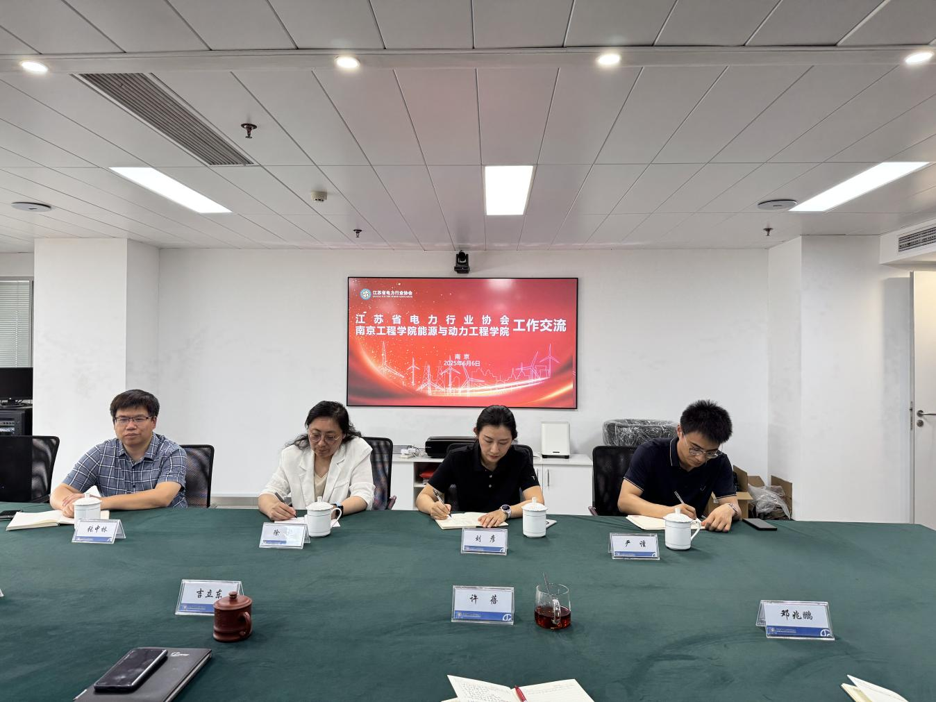 党委书记徐艳及学院相关负责人一行前往江苏省电力行业协会走访交流。江苏省电力行业协会秘书长吉立东、发电专委会主任李晓东、综合部主任许蓓等热情接待并参与座谈。