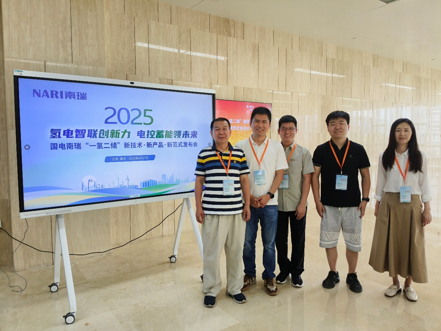 最后,观看了南瑞发布的4S(System、Smart、Safety、Savvy)储能系统整体解决方案及产品、绿电制氢整体解决方案及产品、变速抽蓄交流励磁系统,以及《绿电制氢技术白皮书》。会后,团队参观了南瑞展示中心、氢储产品测试中心、智慧园区运行监控中心设展示区。