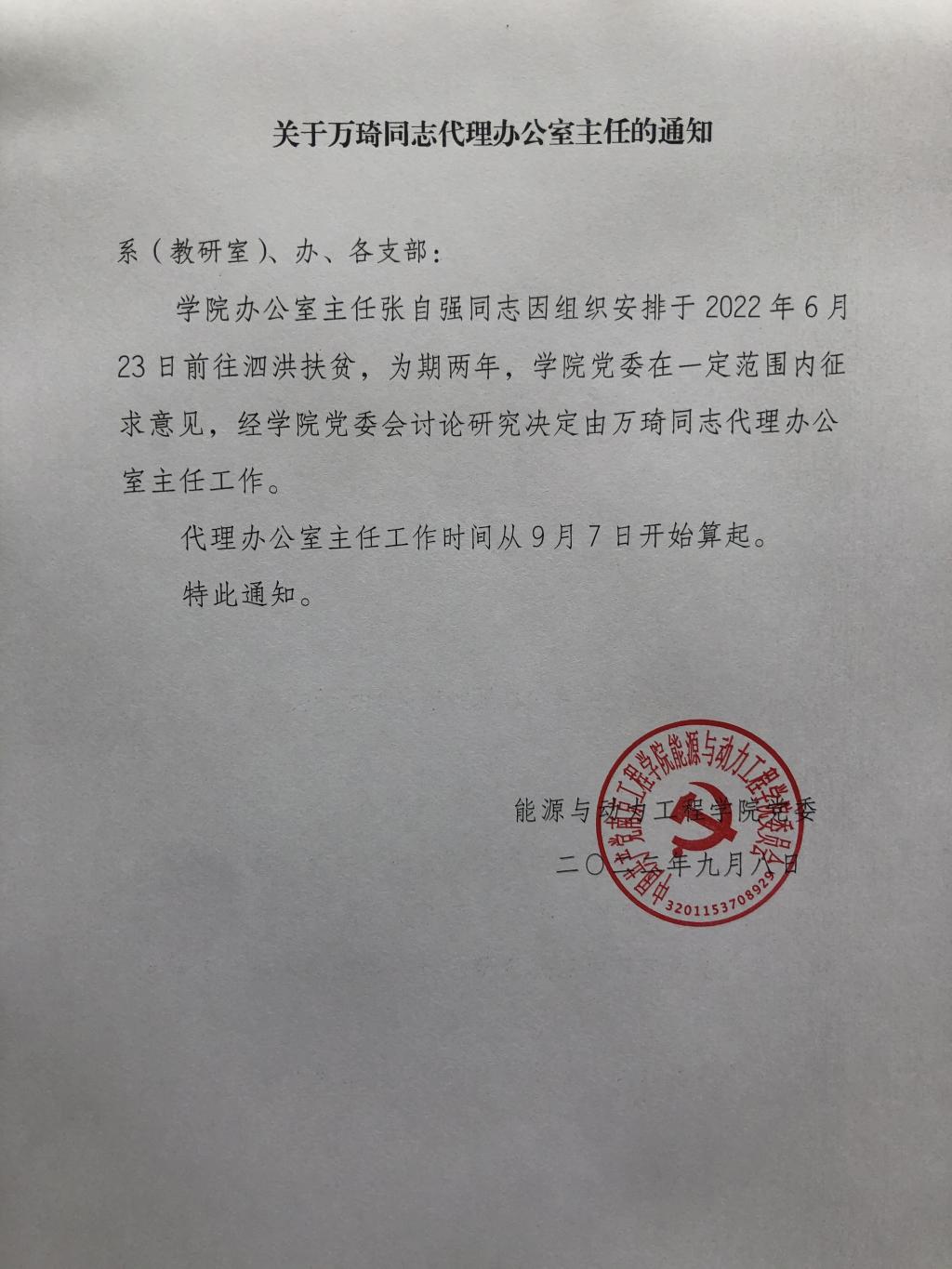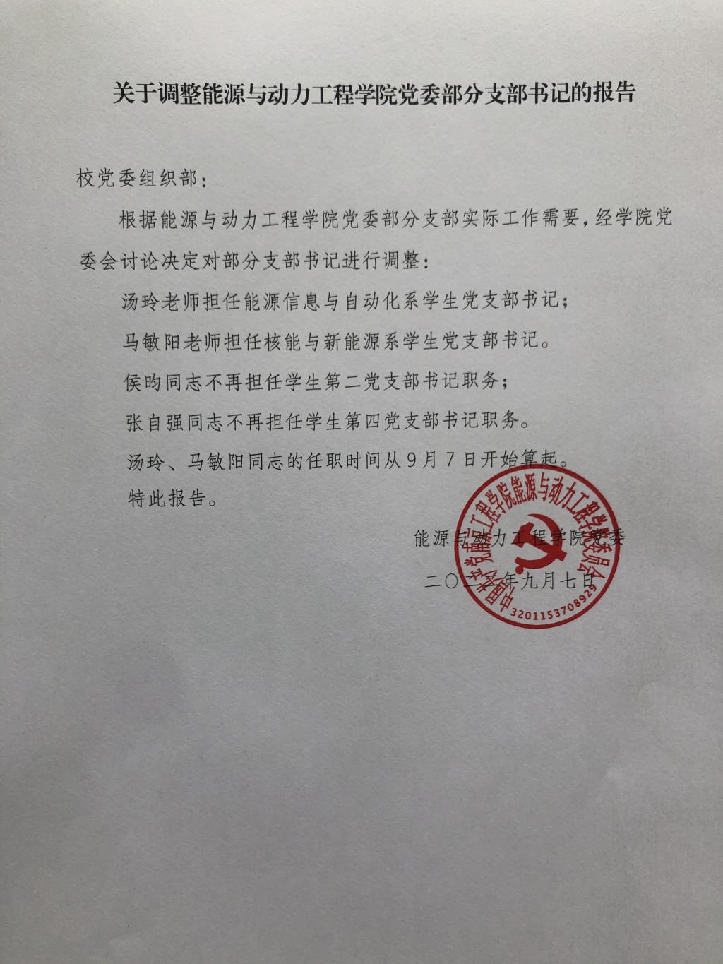 关于调整吃瓜网 学生党支部名称、部分支部书记的报告及关于万琦同志代理办公室主任的通知
