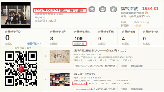 团支部电台自“五四青年节”上线以来,得到了广大团员青年的关注,在QQ、微博等宣传平台的转发、点赞次数达300余次,节目线上收听次数1000余次。值得一提的是,该团支部以“出彩暖通追梦人”为主题,推出“我的一学一做”栏目。支部成员合理分工,先后采访到“创业达人”唐虎、“就业达人”陆阳、“考研达人”成洁等暖通专业成功校友。这一采访专辑得到了广大听众的一致好评,这些暖通人追寻梦想的青春故事对支部青年起着良好的激励作用。