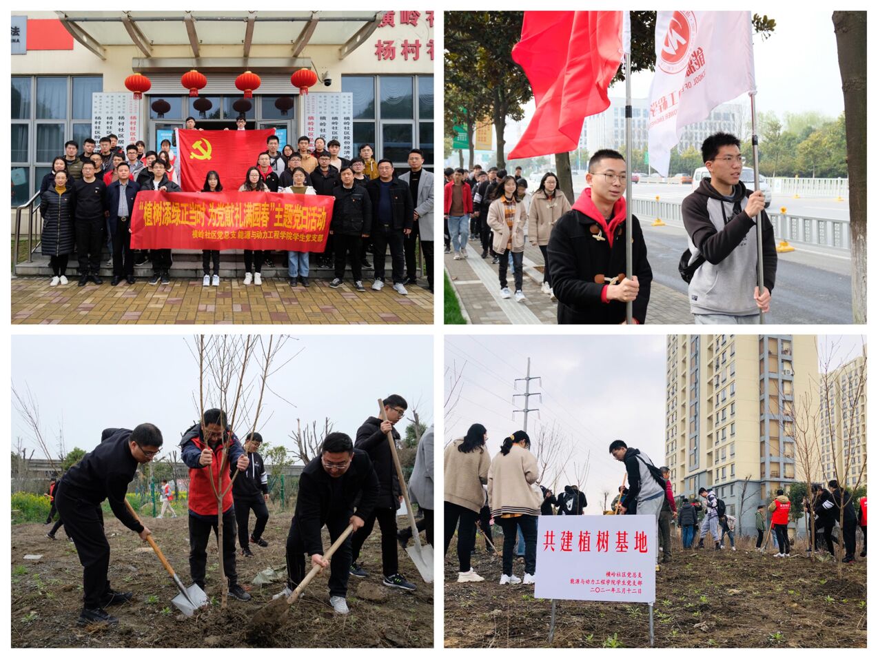 初春的天气还带着凉意,但党员同志们却都热情高涨,干劲十足,植树现场,双方人员分工协作,配合默契,刨坑扶苗,挥锹培土,提水浇苗,一排排树苗错落有致,迎风挺立,为社区增添了一抹生机与活力。参与活动的学生党员黄浩这样说道:“2021年恰逢党的百年诞辰,今天通过植树造林的活动,我们为建党百年献礼,真正用实际行动改善周边生态环境,深入贯彻落实习近平总书记的生态文明思想。”