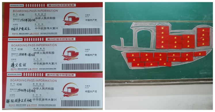 “船票”的正面是鲜艳的党徽,副券上记录着“船号”“登船时间”“出发地”“乘客”“目的地”等信息。“我们在绘制前深入学习了党史,将党史中重大事件发生的时间、地点、原因、经过、影响等描绘出来,从而让‘红船精神’牢牢扎根于每个同学的心间。”能动205团支书毛佳佳说到。1921年,中国共产党诞生;1949年,新中国成立……同学们在船票上一笔一划记录着中国共产党从成立到如今的大事记,字里行间,透露出对中国共产党的感恩与作为中华儿女的自豪。“一张张‘船票’拼成‘红船’,带我们重走了建党100周年的壮阔征程,今后我要努力学习,掌握本领,为国家做出青年学生应有的贡献。”这是参加活动同学的真情流露和一片真诚。