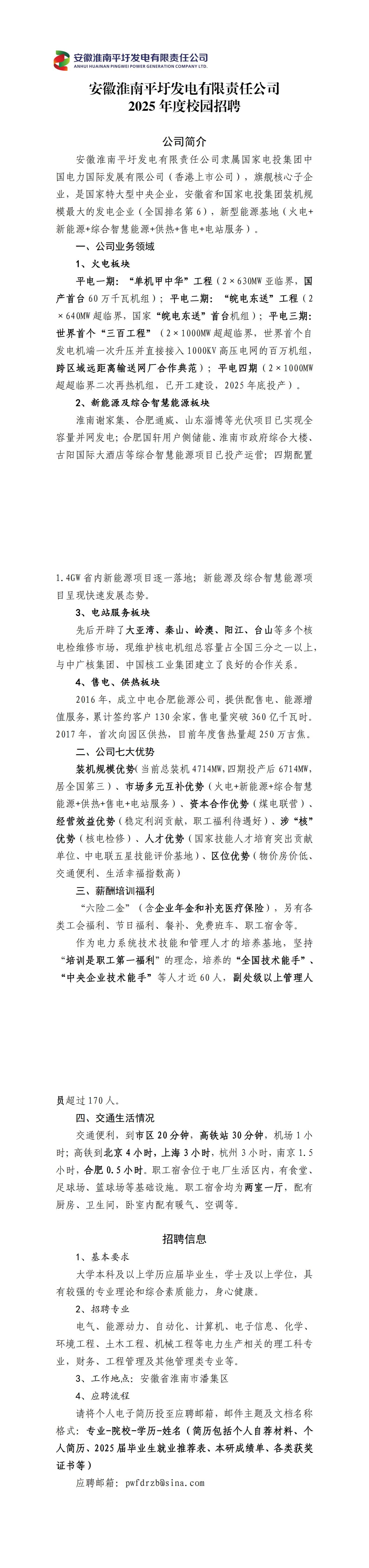 安徽淮南平圩发电有限责任公司2025年校园招聘