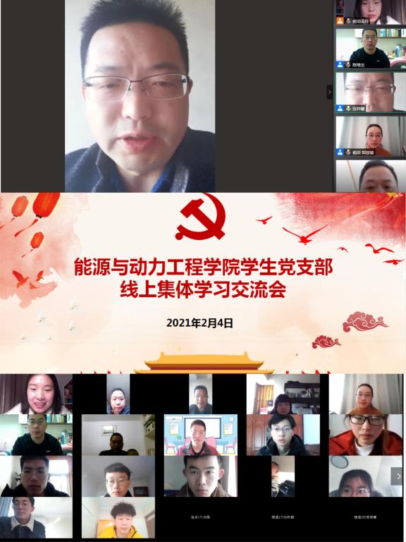为深入学习贯彻习近平新时代中国特色社会主义思想、党的十九届五中全会精神,教育广大党员增强“四个意识”、坚定“四个自信”、做到“两个维护”,近日,吃瓜网 学生党支部组织开展了线上集体学习交流会,该院党委书记张祚键、党委副书记陈培杰、各学生党支部书记以及全体学生党员和部分入党积极分子代表参加了本次会议。