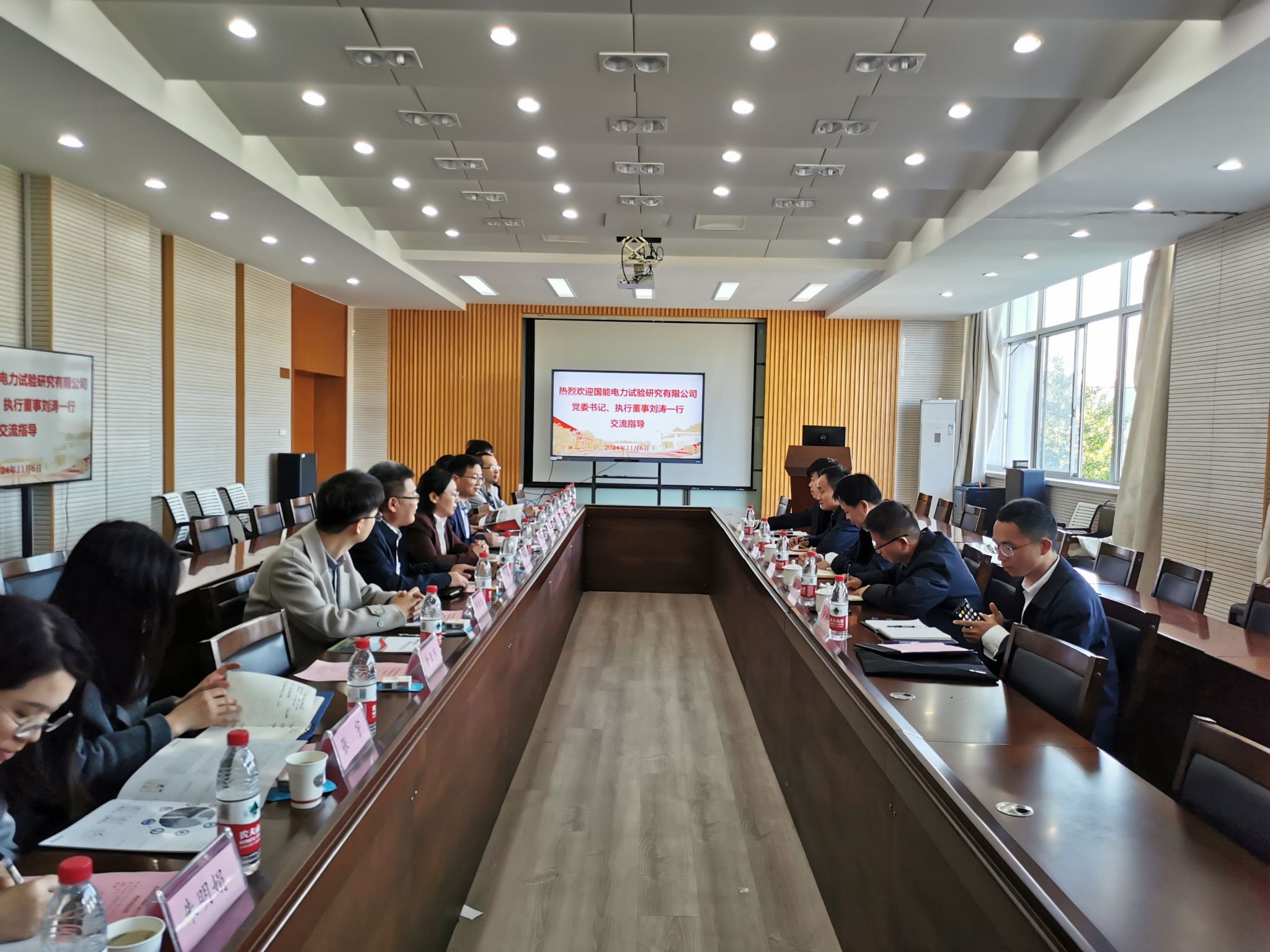11月6日,国能南京电力试验研究有限公司党委书记、执行董事刘涛一行带队到访吃瓜网 。学院党政负责人带领骨干教师在至行苑·工程实践中心9-312会议室热情接待了来宾。