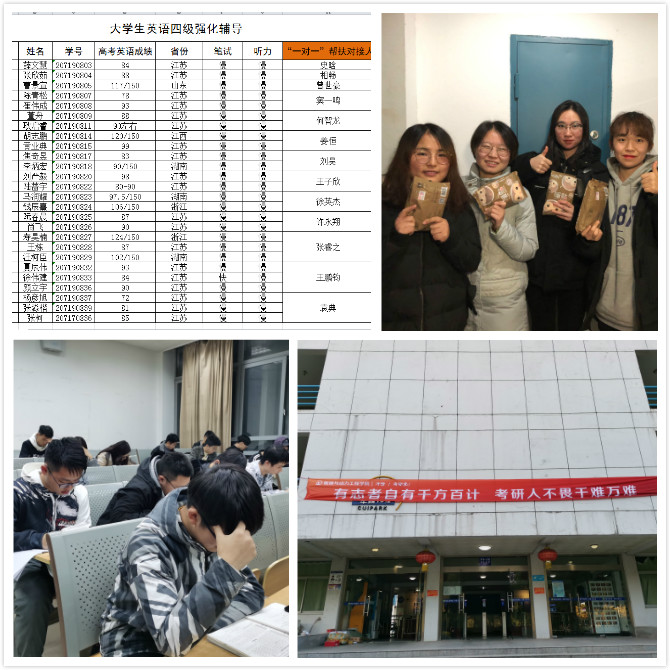 目前,该院已针对不同年级学生群体落实学风建设具体举措。如以班级为单位组织四六级考前培训班,集中帮扶英语基础相对薄弱的学生;以开展晚自习集中学习与学生党员课程辅导的形式,督促大二大三年级学业困难生提高成绩;在学院、宿舍悬挂考研加油横幅,赠送考研学子御寒用品等等。未来,学院将继续扎实推进学风建设,将优良学风考风扎根于每一位学子心中,将教育教学和人才培养工作推上新高度。