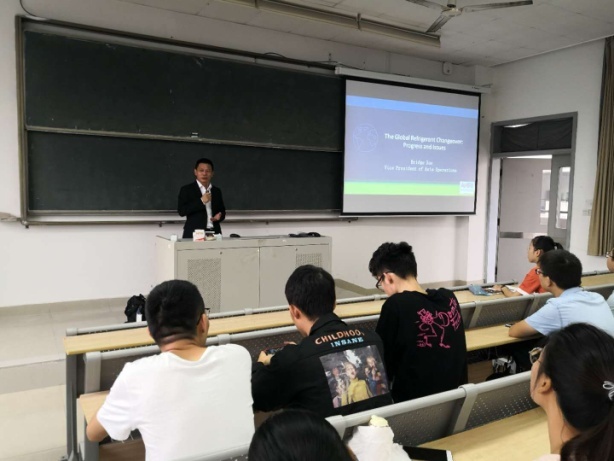 讲座中,薛总对师生关心的暖通制冷行业发展,国内外主流产品以及目前行业中最为重要的制冷剂更换等问题进行了精彩讲解。师生的知识面得到了极大的扩展,同时也使学生更好的了解了行业的最新进展。报告结束后学生踊跃提问,参与度极高。