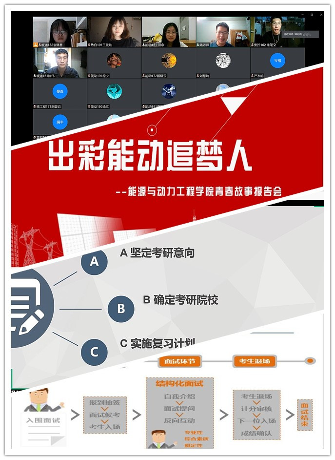 举办“出彩能动追梦人”大学生成长故事会,分享会邀请了该院热自161班苏子璇等六位2020届优秀学子作为嘉宾,分享他们大学期间的收获与成长故事。学院老师代表与各班学生代表共计300余人通过腾讯会议平台参与此次活动。