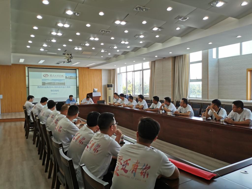 集控062班的20余名校友,身着印有“拾年相聚”文字,带有校徽的白T恤,回到了心心念念的母校。该院党政领导在至行苑·工程实践中心9-312会议室热情接待了校友们。