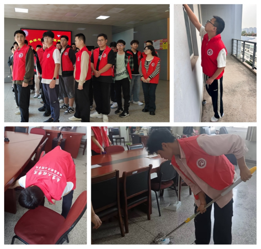 同学们积极响应号召,加入热火朝天的清扫活动中,他们手持扫帚、拖把等劳动工具,仔细擦拭桌面、整理文件等,细心打扫每个学院各办公场所的角落,用实际行动诠释了“奉献、友爱、互助、进步”的志愿服务精神。经过大家的共同努力,办公室面貌焕然一新,展现了高度的责任感和敬业精神。活动现场,学院党委书记徐艳指导此次活动,强调此次劳动不仅是一次简单的劳动志愿实践,更是一次生动的党性教育和劳动教育。她指出,党员们应当发挥模范带头作用,为迎接省委第六轮巡视贡献自己的力量。