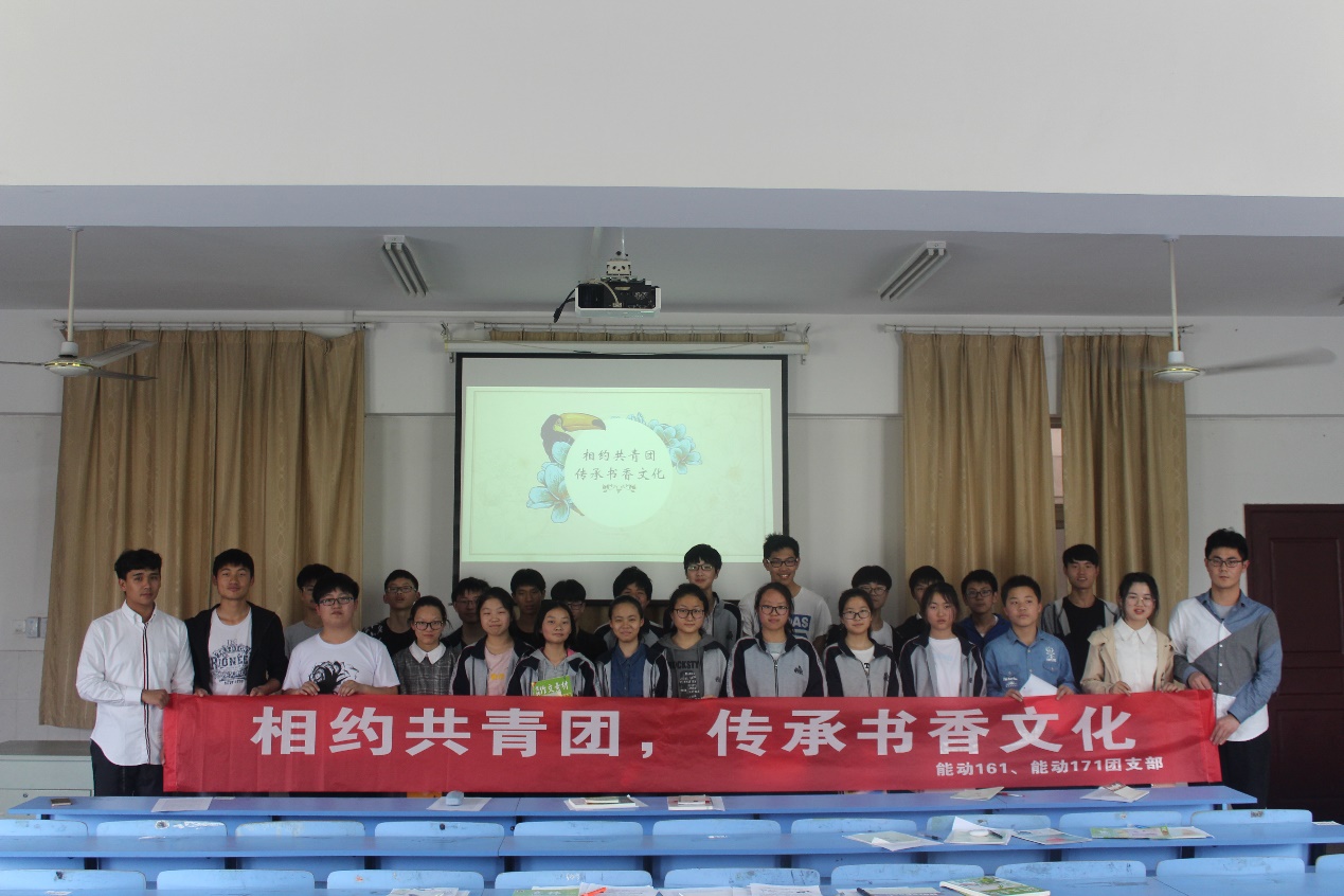 能动161、能动171团支部带来的“书香团课”正在进行。讲台上,该院能动171团支部田茹梦同学从青年团员的视角为56名中学生介绍着经典读物;讲台下,同学们或沉思、或记录、或饶有兴趣地听着。
