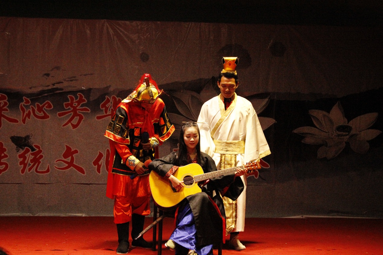 晚会以时间为轴线,各参演班级选取不同历史时间点,展现出不同的时代风貌,突出不同的文化创意。晚会在古典舞《青蛇》中拉开序幕,集控172班汉服走秀《人间盛装》令人眼前一亮,他们通过汉服展示、汉家礼仪讲解的形式传递汉服文化;能动172班的“小戏骨”们将经典话剧《雷雨》搬上舞台,他们声情并茂地演绎了三十年的风风雨雨,一幕幕悲剧在同学们的举手投足间展现得淋漓尽致。暖通172班以反串小品《戏说三国》带动观众感受三国时期的历史魅力。2017级班主任们也倾情助演班级节目,将整台晚会推向高潮。