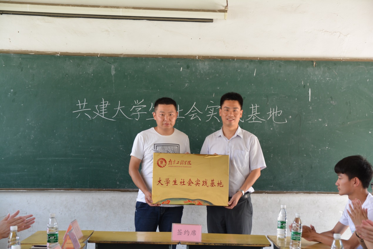 仪式上,能动学院党委书记邓东华与孟严春校长签署了实践基地合作共建协议书。志愿者代表汇报了团队实践成果,梳理了10天来的实践历程,表达了用心服务、踏实做事、虚心学习的决心。校团委书记陈建华为实践基地揭牌,并对徐州沛县各级领导老师给予大学生实践以及基地建设的大力支持表示感谢,愿双方以共建基地为契机,加强交流合作。他还希望志愿者们通过暑期实践把感恩和回馈有机结合,在实践中深入践行“勤学,修德,明辨,笃实”八字真经,真正做到受教育,做贡献,长才干,树形象,为今后实践基地的建设打下坚实基础,为做出更好的实践成果做好充分准备。会后,与会领导走进课堂,向孩子们发放了文具等慰问品。