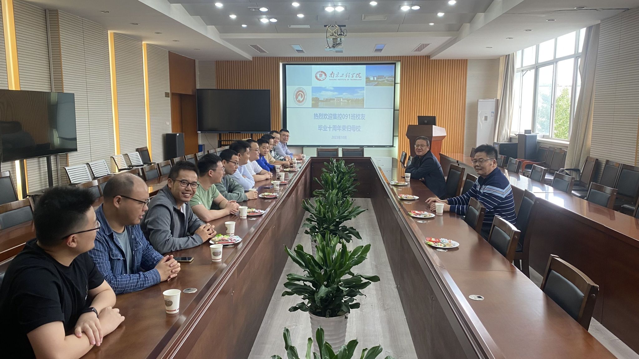 集控091班二十余位来自五湖四海的校友们怀揣着对母校、老师、同学的浓浓深情齐聚一堂举办毕业十周年返校活动,并在工程实践中心9号楼三楼会议室召开座谈会。学院党委副书记朱正林、副院长薛锐参加了此次活动。